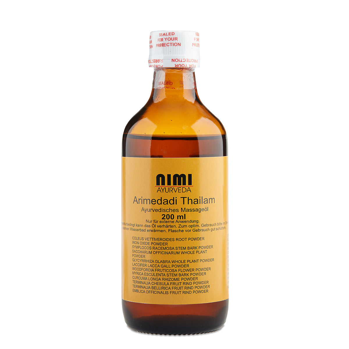Arimedadi Thailam is a traditional Ayurvedic herbal oil used in Ayurveda. It is mainly used for oral hygiene and to care for teeth and gums, but can also be used as a head oil. Here are some details about Arimedadi Thailam: