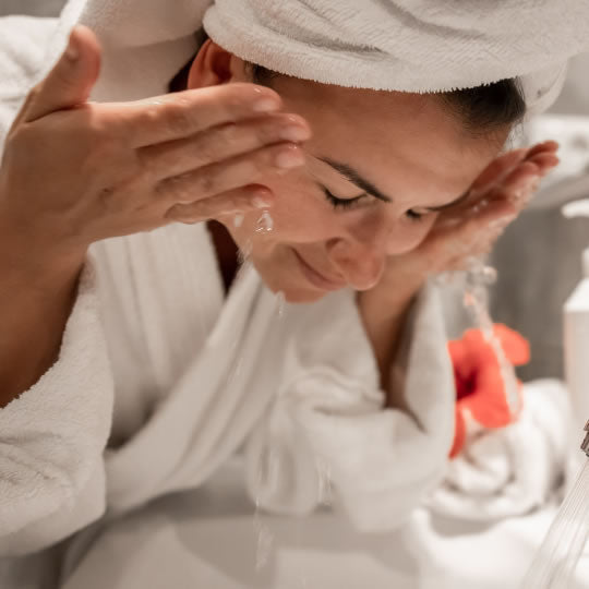 Cleanse your face twice a day: first thing in the morning after you wake up and last thing in the evening before you go to bed. In the morning, clear, lukewarm water is perfectly sufficient. Over-hygiene does more harm than good to your skin. In the evening, take a little more time to cleanse your face.