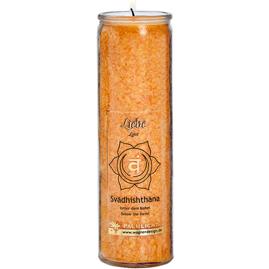 Chakra Candle: Swadhishthana chakra (orange): This energy center is located below the navel and is often referred to as the sexual and creative center. It symbolizes water, the ability to center, taste and is associated with the color orange.