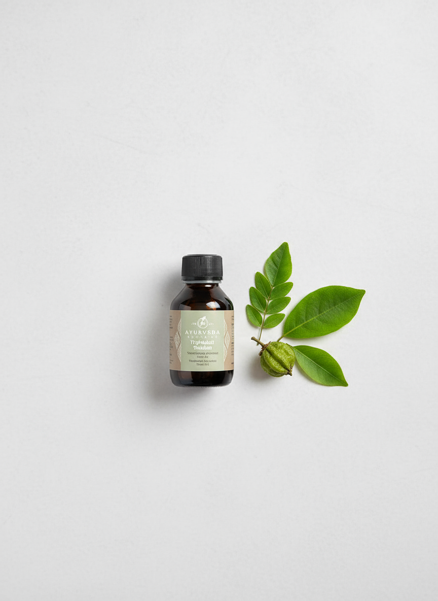 Hinweis: Triphaladi Thailam ist ein ayurvedisches Massageöl zur äußeren Anwendung. Die genannten Eigenschaften basieren auf der Erfahrungen der ayurvedischen Tradition. Es ersetzt nicht die Konsultation einer medizinischen Fachperson.