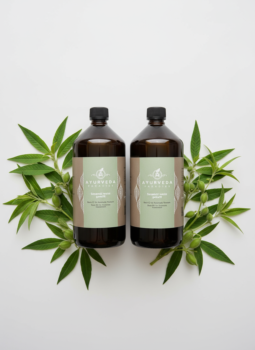 Massage ayurvédique à l'huile de sésame premium blanc mûri du paradis ayurvédique