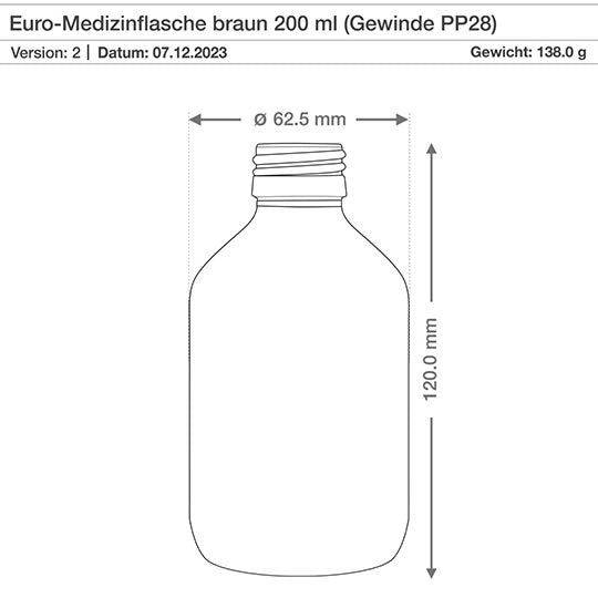 Die 200 ml Medizinflasche von ApoGlas ist speziell für die sichere Aufbewahrung von flüssigen Stoffen konzipiert. Dank des bruchsicheren braunen Glasmaterials schützt sie den Inhalt vor Licht und sorgt somit für eine längere Haltbarkeit und Wirksamkeit der Wirkstoffe.