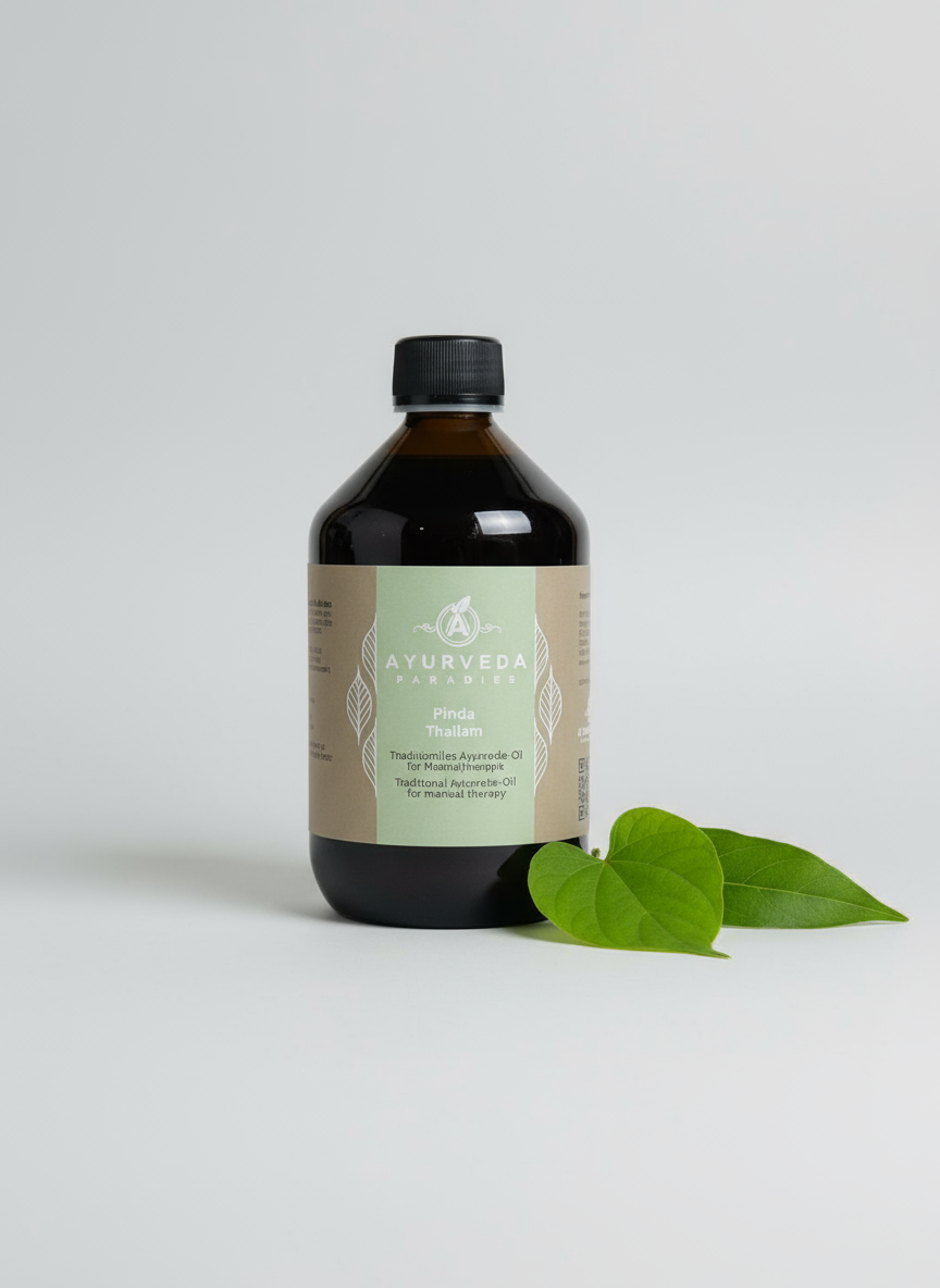 Hinweis: Pinda Thailam ist ein kosmetisches Massageöl. Die Angaben zur Dosha-Balance beruhen auf der jahrtausendealten ayurvedischen Tradition.