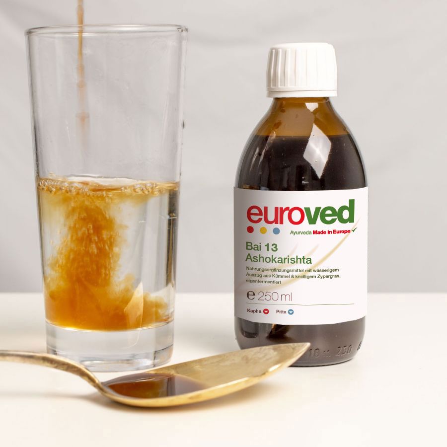 Bai 13 Ashokarishta: Rasayana für die Senkung von Pitta und Kapha und gleicht Vata aus (laut Sanskrit).