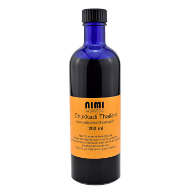 Chukkadi Thailam ist ein ayurvedisches Massageöl, das speziell zur Reduzierung von Vata-Dosha eingesetzt wird. Es kann bei Beschwerden wie Unruhe, Schlaflosigkeit, Verspannungen, Gelenkschmerzen, Muskel- oder Kopfschmerzen helfen, da Vata-Überschuss diese Beschwerden hervorrufen kann.