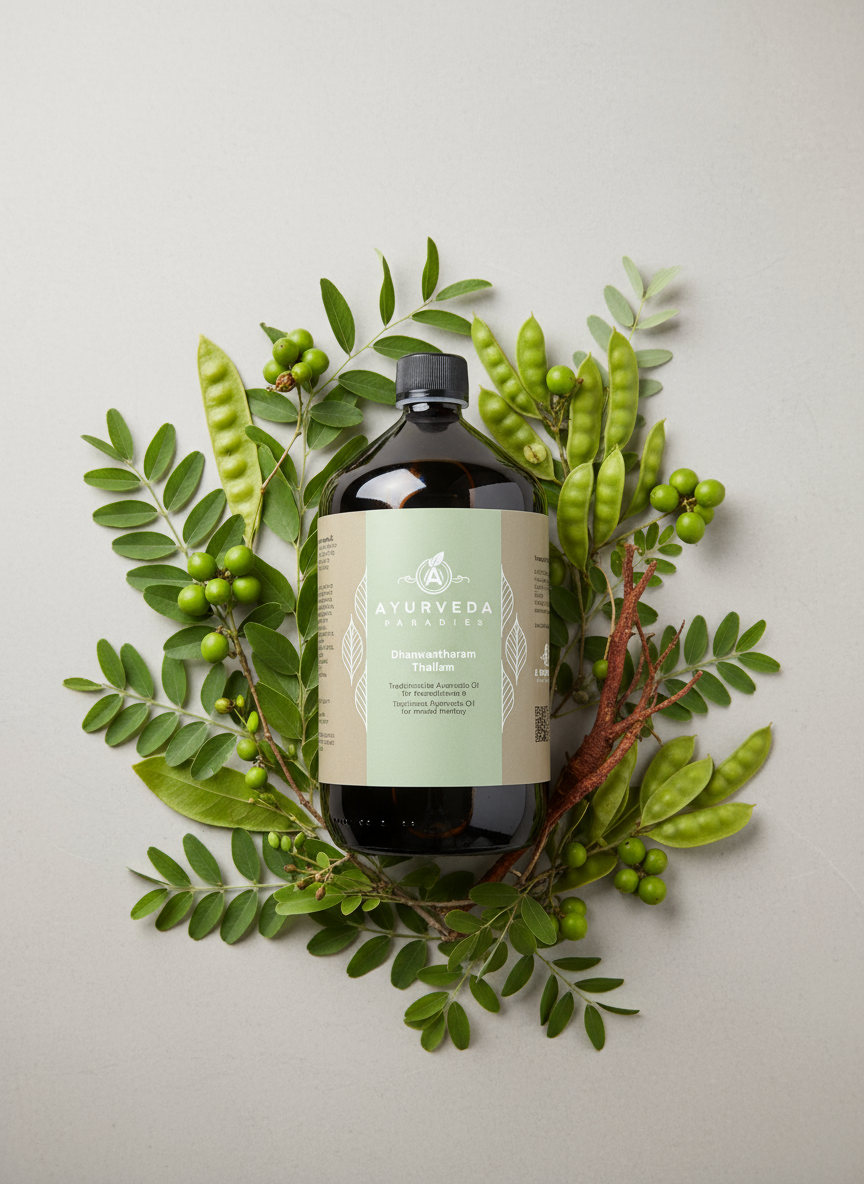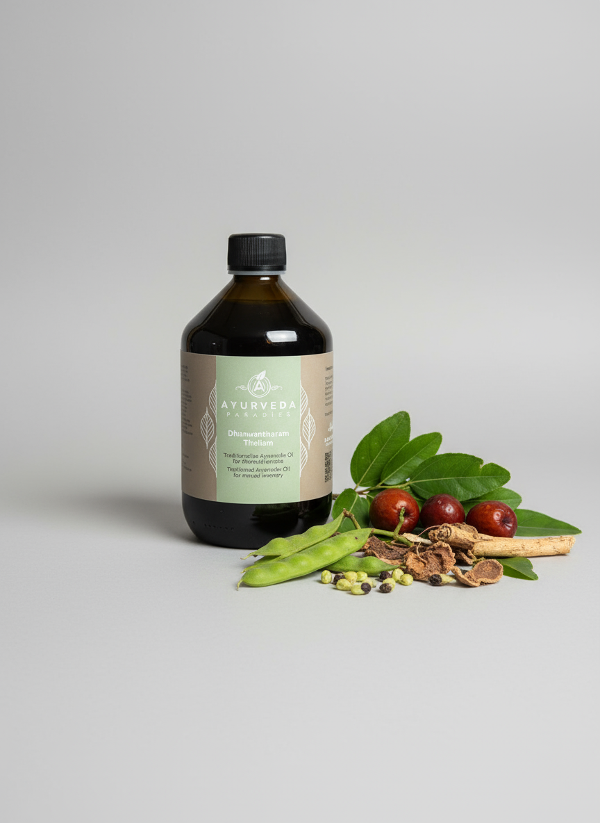 Dhanwantharam Thailam ist ein traditionelles ayurvedisches Öl, das für seine vielfältigen gesundheitlichen Vorteile bekannt ist. Es wird häufig in der ayurvedischen Medizin verwendet, um das allgemeine Wohlbefinden zu fördern und verschiedene Beschwerden zu behandeln. Die Herstellung erfolgt traditionell durch das Mischen von hochwertigen pflanzlichen Ölen mit einer ausgewählten Kombination von Kräutern und Gewürzen.