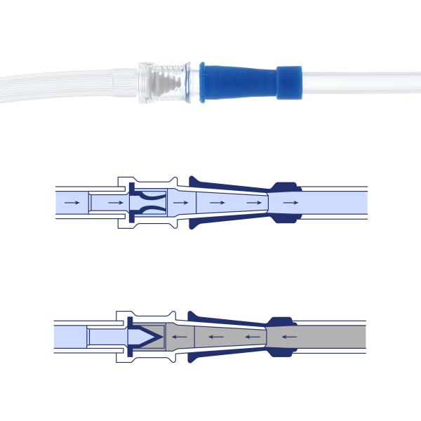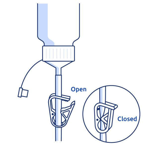 Die Schlauchklemme wird mitgeliefert, ist aber nicht unbedingt notwendig. Sie ist insbesondere für den Einsatz in Kliniken gedacht. So kann man den Flüssigkeitsbehälter mit Wasser füllen, die Schlauchklemme schließen und dann zum Patienten gehen, ohne dass Wasser auslaufen kann.